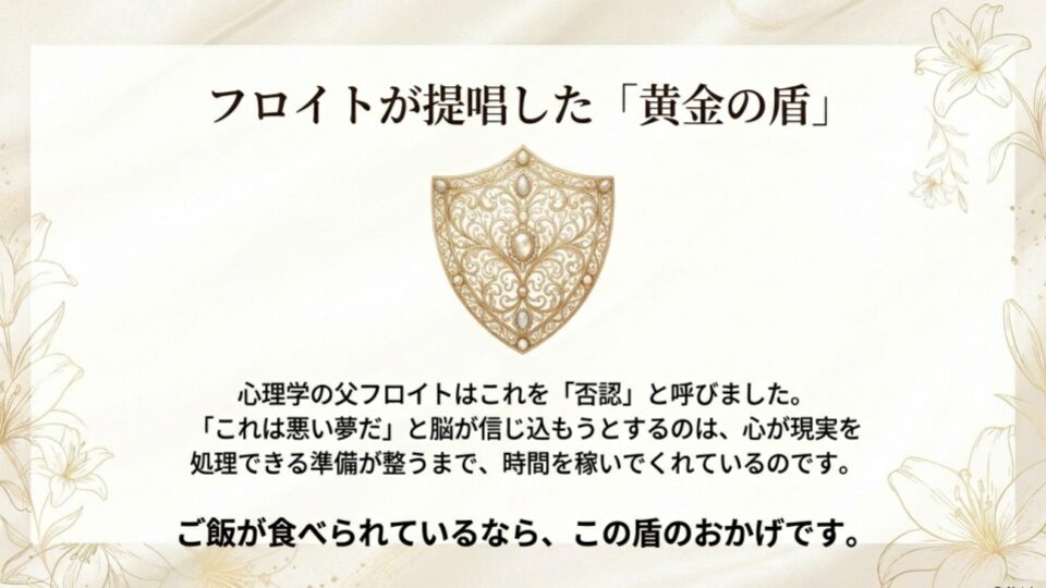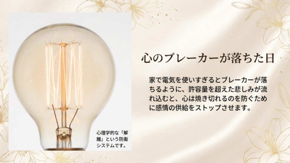一度に大きな悲しみや絶望が流れ込むと、心という回路は焼き切れてしまいます。それを防ぐために、脳が一時的に感情の供給をストップさせているのです。心理学ではこれを「防衛機制」や、一時的な「解離(かいり)」と呼びます。