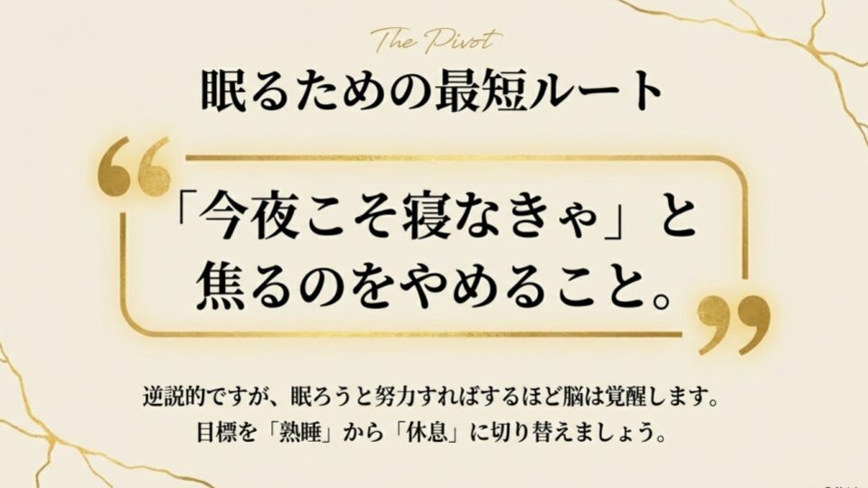 今夜はもう、戦うのをやめましょう。「眠ろう」と努力するのをやめましょう。ただ、温かい飲み物を飲み、柔らかい毛布に包まれ、自分の呼吸の音だけを聞いてみてください。
