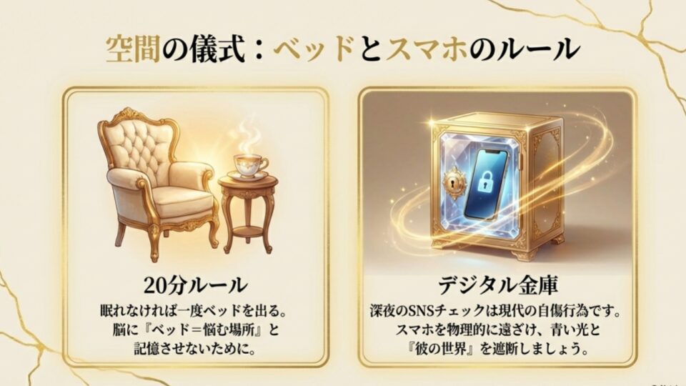 これが一番難しい。分かっています。でも、深夜のSNSチェックは現代の自傷行為です。
