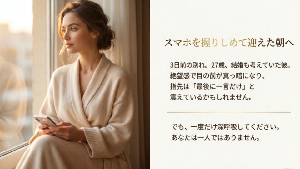 今、あなたの指先は「最後に一言だけ」「誤解を解きたい」と、彼への連絡を求めて震えているかもしれませんね。でも、一度だけ深呼吸して、この記事を最後まで読んでほしい。