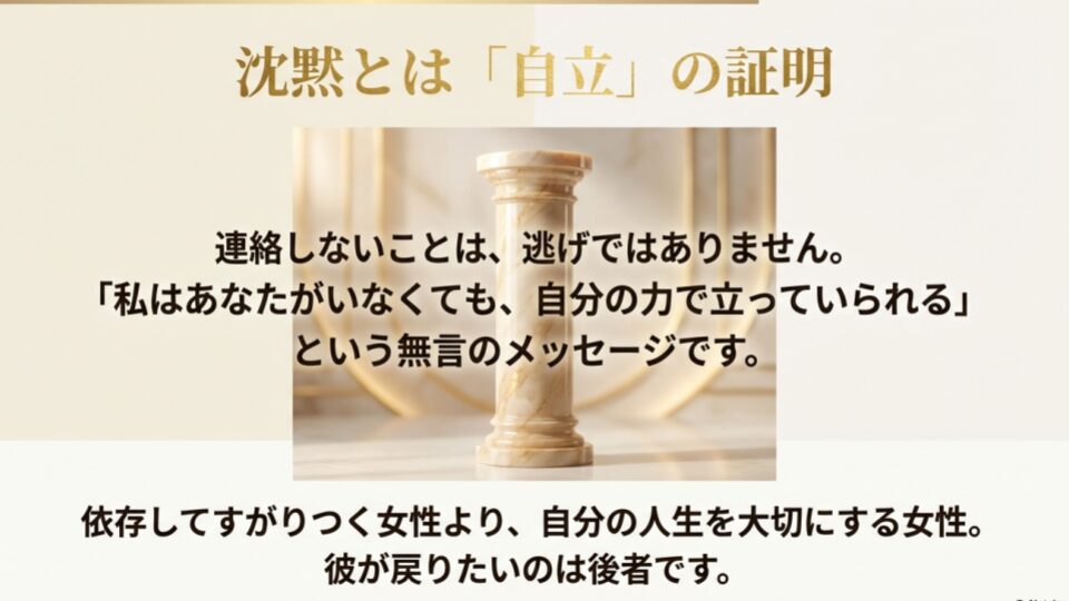ここまで読んでくださったあなたなら、もう気づいているはずです。連絡をしないことは、逃げではありません。沈黙とは、「私はあなたがいなくても、自分の力で立っていられる強さを持っている」という無言のメッセージなのです。