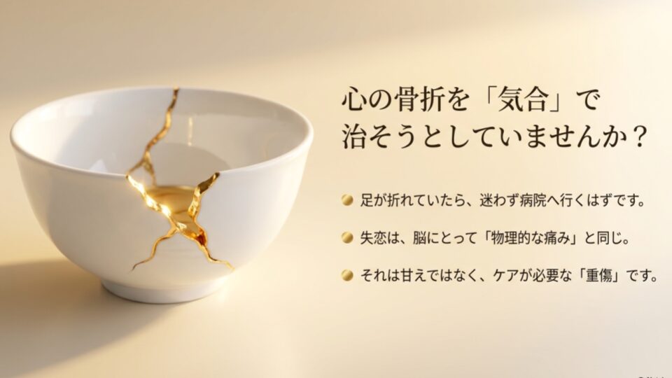 いいえ、全く違います。心理学では失恋を「複雑な喪失体験」と捉えており、自力で解決しようとするよりも、専門家の介入がある方が回復が早いことが研究で示されています。むしろ、自分の痛みを認め、適切に対処しようとする姿勢は非常に自立した大人な行動です。