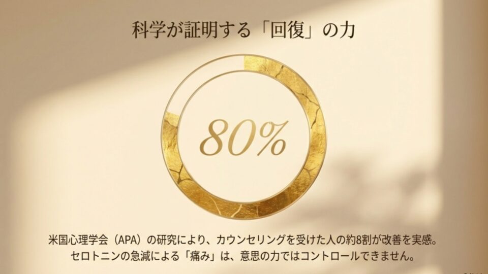 心の痛みも同じです。特に、結婚を意識していた相手との別れは、あなたの人生設計そのものが崩壊したことを意味します。セロトニン(幸せを感じる脳内物質)が急減し、脳は物理的な痛みを感じる部位と同じ場所が活性化しているのです。