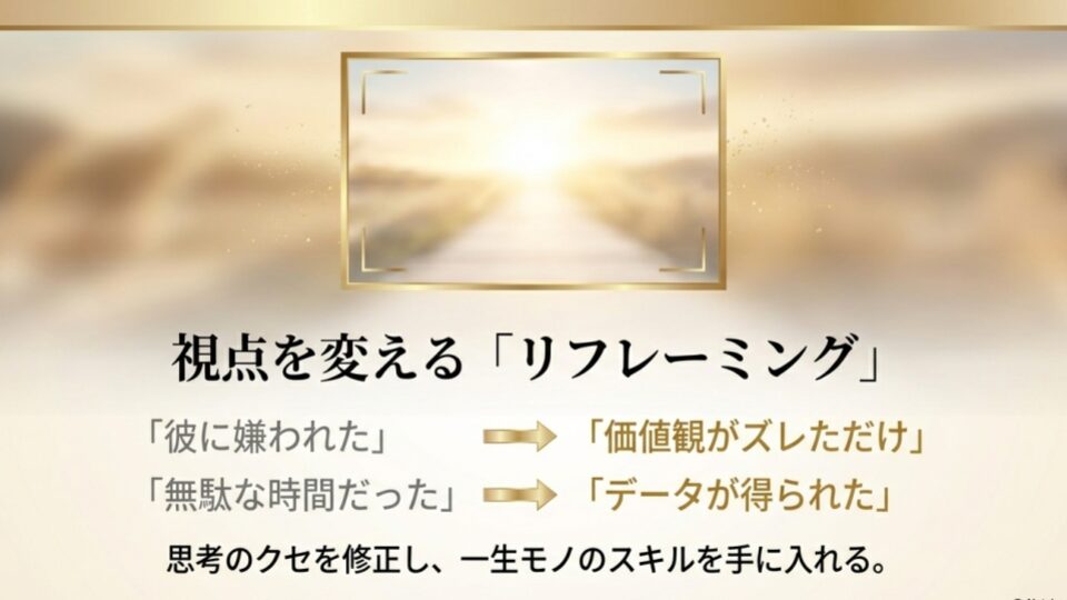 この視点の切り替え(リフレーミング)は、一生モノのスキルになります。