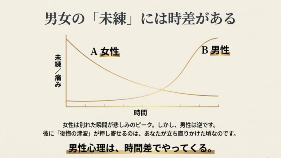 でも、安心してください。今、あなたが感じている絶望と、彼が感じている感情は、驚くほど「ズレ」ています。男性の心には、女性とは全く違う時間の流れがあるのです。