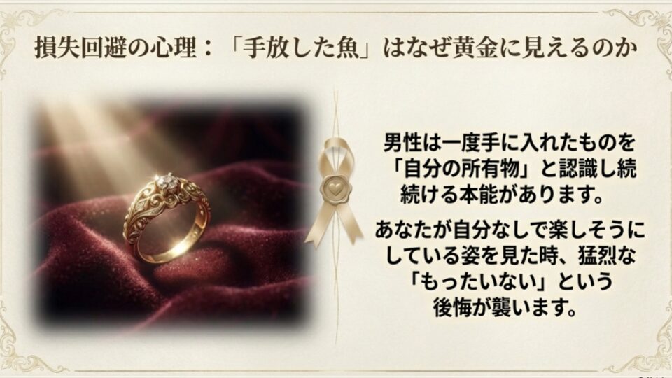 沈黙を守ることで、脳は自然と悪い記憶を忘れ、良い記憶だけを残そうとします(心理学でいう『自己愛的な記憶の改竄』です)。彼の中で「やっぱりあいつ、いい女だったな」という修復作業が終わるのを待つのです。