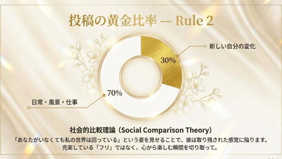「楽しんでたら、勝手に目に入った」このスタンスこそが、彼の独占欲を再点火させる最大の鍵になります。