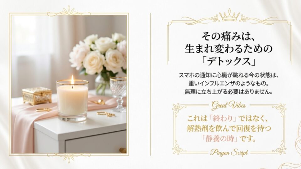 でも、大丈夫。今のあなたは、重いインフルエンザから回復しようとしている状態と同じです。無理に立ち上がろうとせず、まずはこの記事を「解熱剤」代わりに読んでみてください。