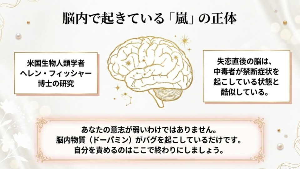 3日前まで、あなたの世界の中心には「彼」がいました。彼が笑えば世界は明るく、彼の返信が遅ければ世界は灰色に沈む。そんな「恋愛依存」の状態から抜け出すのは、骨が折れる作業かもしれません。