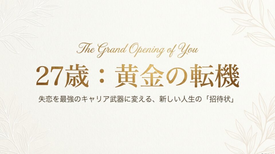 27歳。この年齢は、残りの人生を自分らしくデザインするための、神様がくれた最後にして最強の「余白」です。今の痛みは、あなたが新しい自分に生まれ変わるための、避けられない脱皮のようなもの。