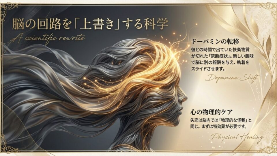 ここで新しい趣味に没頭すると、脳は彼以外のことから報酬を得ることを学習し始めます。これは「転移」と呼ばれる心理現象。執着を無理に消すのではなく、別の何かにスライドさせるのです。焦らなくていい。脳の回路は少しずつ、書き換えられます。