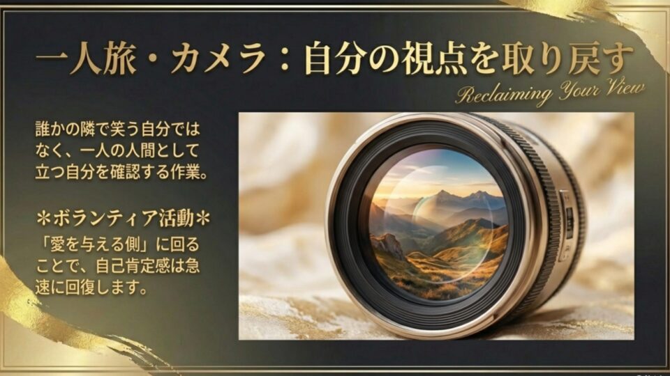 週末にカメラを持って、知らない街へ一人で出かけてみてほしい。彼と一緒に歩いた道ではなく、自分の目で見つけた「美しい景色」を切り取る。その作業は、誰かの隣で笑う自分ではなく、一人の人間として立っている自分を確認する作業でもあります。