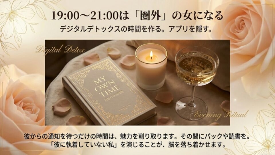 彼からの通知を待つだけの時間は、あなたの魅力を削り取ります。その間にパックをしたり、読みたかった漫画を一気に読んだりしましょう。「彼に執着していない私」を無理やりにでも演じることで、脳は少しずつ落ち着きを取り戻します。