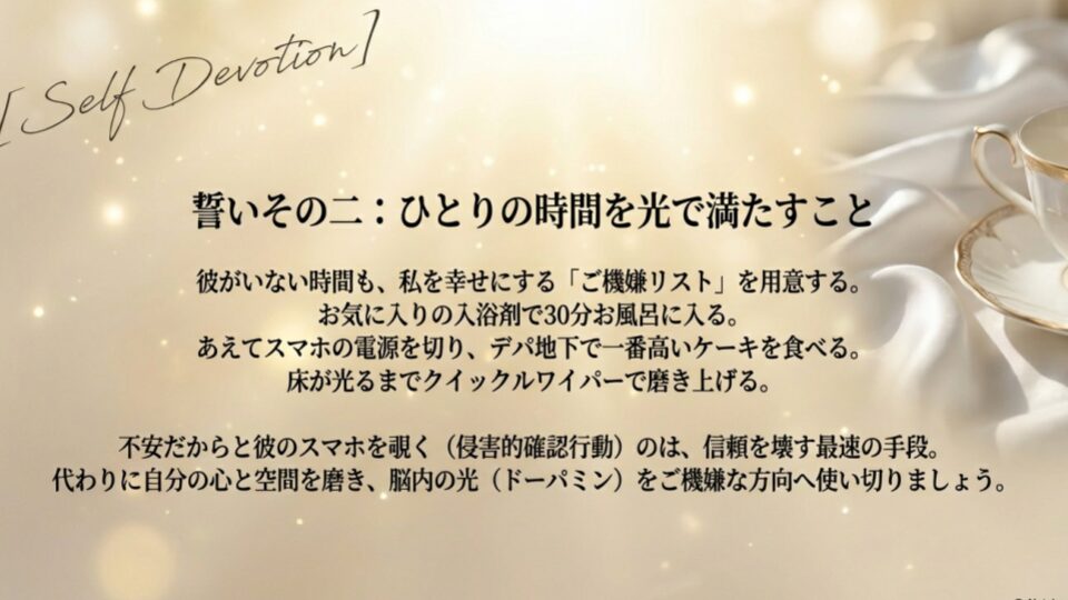 一番やってはいけないことです。心理学では「侵害的確認行動」と呼ばれ、信頼を壊す最速の手段となります。スマホを見ても、あなたの不安が消えることはありません。むしろ「疑う材料」を探してしまう脳の状態になっているため、逆効果です。スマホを見る代わりに、彼の好きな料理を作るか、筋トレをして脳内のドーパミンを別の方向に使い切りましょう。