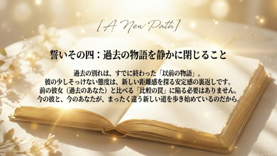 それは「比較の罠」という認知の歪みです。彼は前の彼女(過去のあなた)も含め、いろんな選択肢がある中で、今のあなたを選びました。過去のあなたに勝とうとする必要はありません。今の彼と、今のあなたが、新しく出会い直したのだと考えましょう。アップデートされた最新版のあなたこそが、彼にとっての最高傑作です。