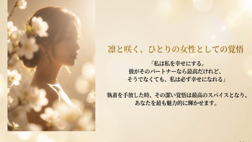 この潔い覚悟こそが、実は男性を最も惹きつけ、決断させる「最高のスパイス」だったりします。重い女を卒業し、軽やかな女性になりましょう。