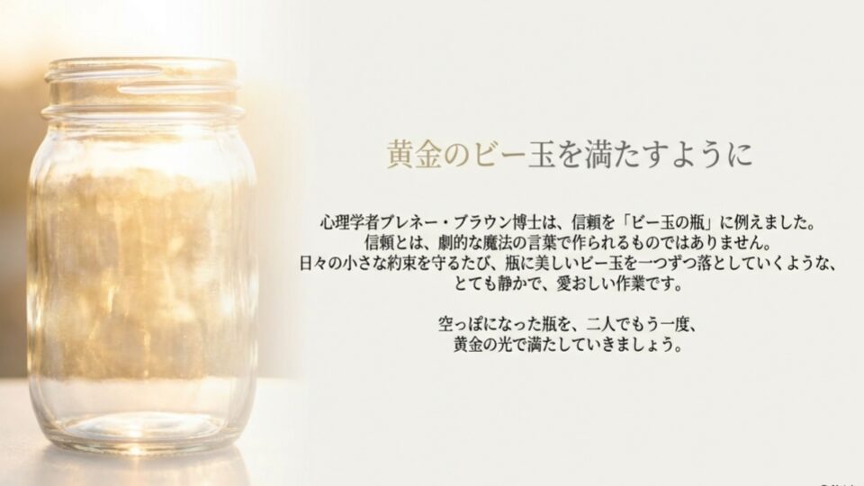 アメリカの心理学者ブレネー・ブラウン博士は、信頼の本質を「ビー玉の瓶」に例えています。