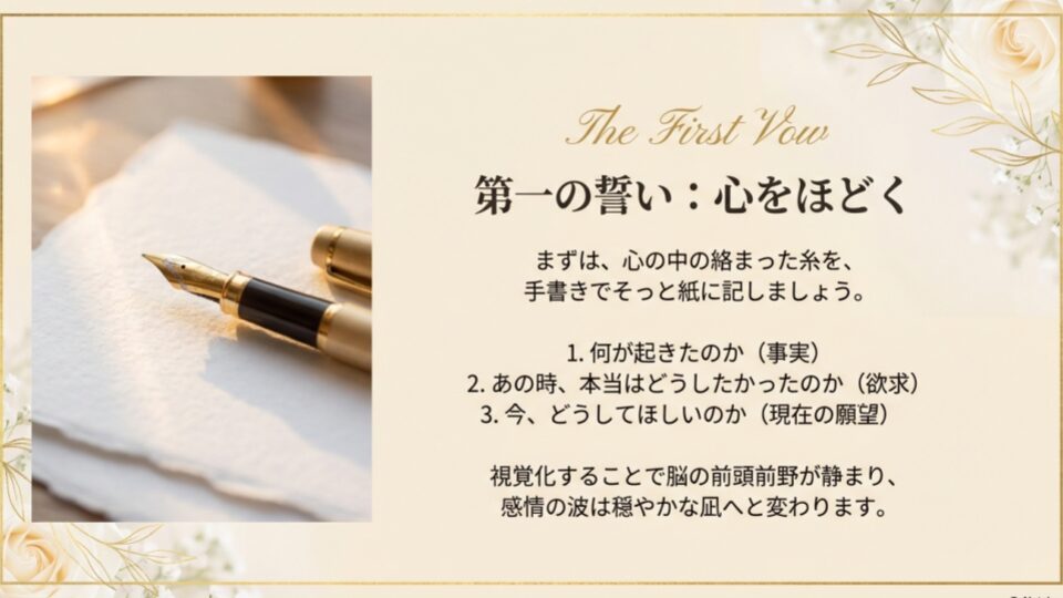 復縁を目指すにせよ、新しい一歩を踏み出すにせよ、まずは自分の中にある「生もの(未消化の感情)」を整理する必要があります。放っておいても、勝手に消えてはくれません。