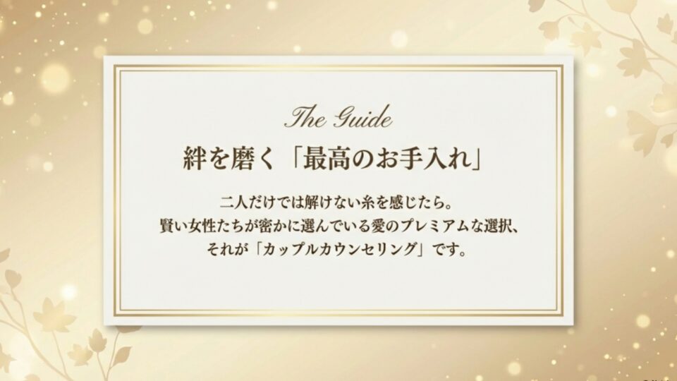 「カウンセリングなんて、欧米のドラマの世界だけでしょう?」そう思うかもしれません。でも、今の日本でカップルカウンセリングは、賢い女性たちが密かに選んでいる「関係修復のショートカット」なんです。