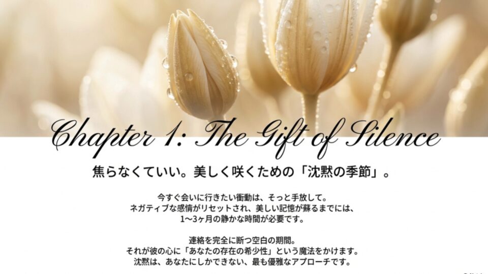 このタイミングで連絡を絶つことで、彼は初めて「あなたという存在がいなくなった事実」をリアルに実感し始めます。これを心理学では「負の感情の減衰」と呼び、時間が経つほど悪い記憶が薄れ、楽しかった思い出が美化されやすくなる現象を利用するのです。最低でも1ヶ月、できれば3ヶ月の冷却期間を置きましょう。焦らなくていい。今の静寂は、次の再会への準備期間です。