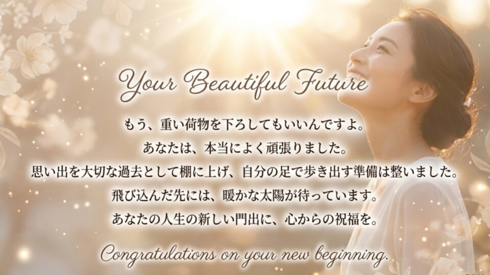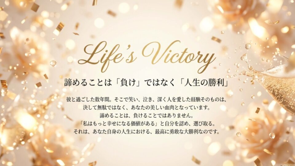 諦めることは、負けることではありません。「私はもっと幸せになる価値がある」と、自分自身を認めてあげるための勇気ある決断です。