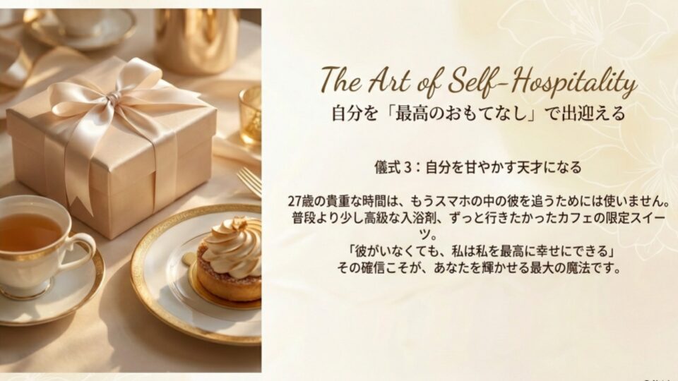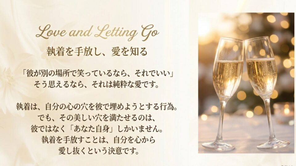 「彼がいなくても、私は私を幸せにできる」この実感が、執着を手放すための最強の武器になります。自分を甘やかす天才になってください。
