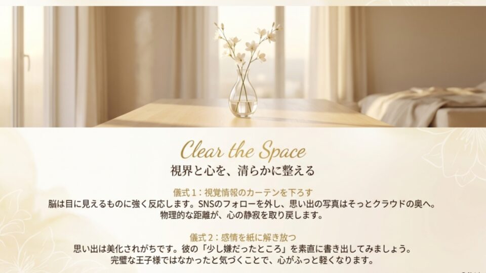 まずは物理的な距離を置きましょう。見なければ、思い出す頻度は劇的に減ります。