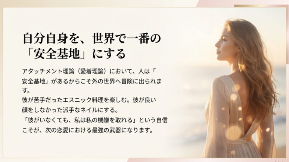 「彼がいなくても、私は私の機嫌を取れる」この自信が、次の恋愛における最強の武器になります。