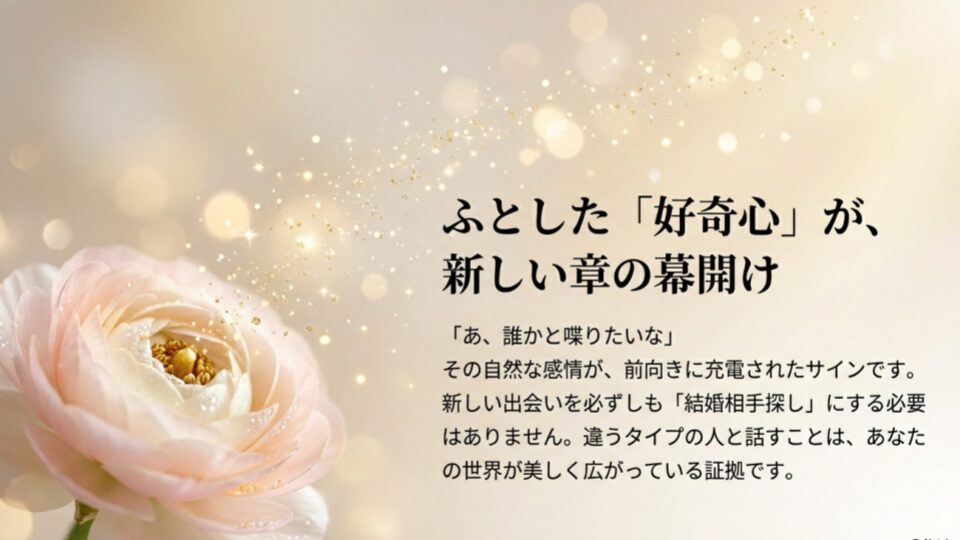 新しい出会いを、必ずしも「結婚相手探し」にする必要はありません。ただ、今までとは違うタイプの人と話してみたり、アプリを覗いてみたりすることは、あなたの「世界が広がっている」証拠です。