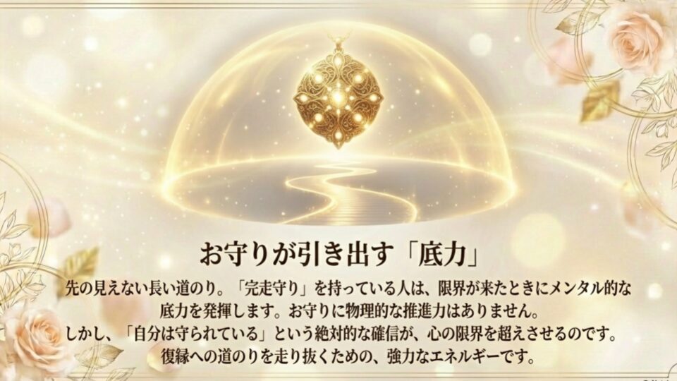 物理的な速さは同じでも、苦しい35km地点で、お守りを持っている人は「あと少し頑張れる」というメンタル的な底力を発揮しやすくなります。お守りに物理的な推進力があるわけではありません。しかし、「自分は守られている」という確信が、筋肉の限界を超えさせるのです。