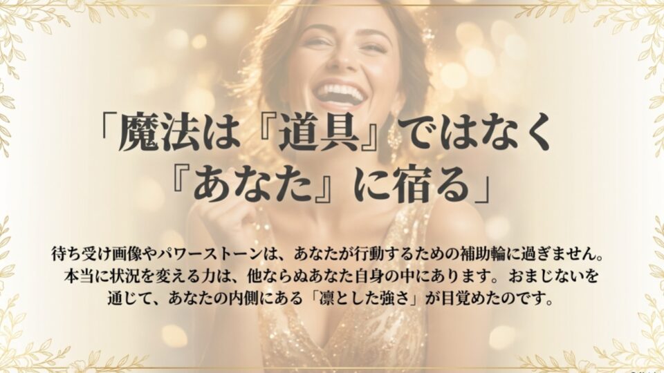 ここまで読んでくださったあなたは、もう気づいているかもしれません。待ち受け画像や、パワーストーンや、月の力。それらはすべて、あなたが「幸せになりたい」と願い、行動するための補助輪に過ぎません。