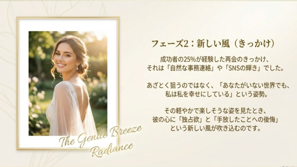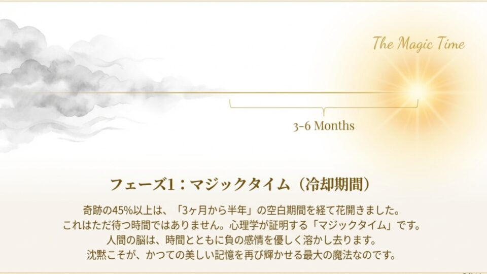 復縁を狙うとき、私たちが最初に気になるのは「いつ、どうやって?」ということですよね。成功者の体験談を分析すると、成功のフェーズは大きく分けて3つに分類されます。