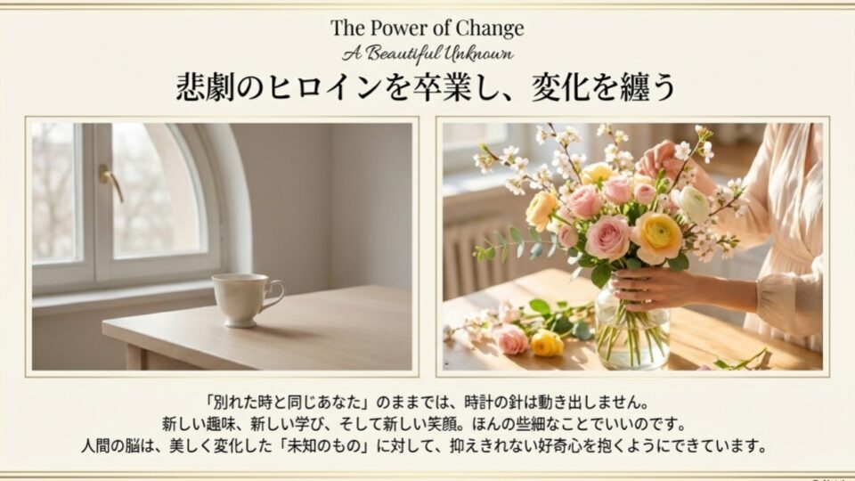 外見のアプローチはもちろん、新しい趣味、資格取得、仕事への打ち込み方。些細なことでいいのです。「あれ、なんか雰囲気が変わったな?」と思わせること。人間の脳は「未知のもの(新しいあなた)」に対して強い好奇心を抱くようにできています。